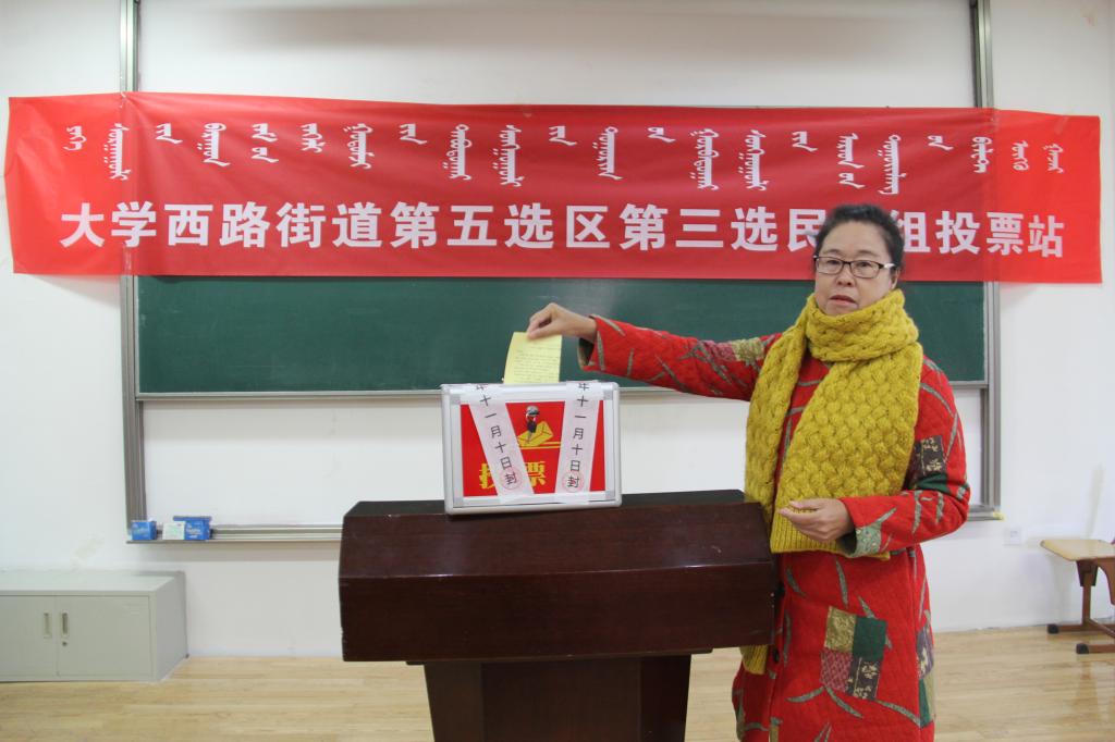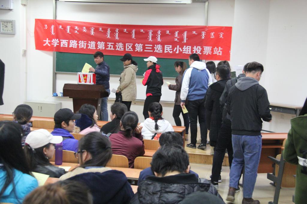 2017年11月10日上午8点30分,amjs澳金沙门线路首页在内蒙古大学综合楼阶二教室组织召开呼和浩特大学西路街道第五选区第三小组投票站选民大会,选举赛罕区第四届人大正式代表候选人。监票人青斯琴老师主持选举大会,选举工作顺利进行。