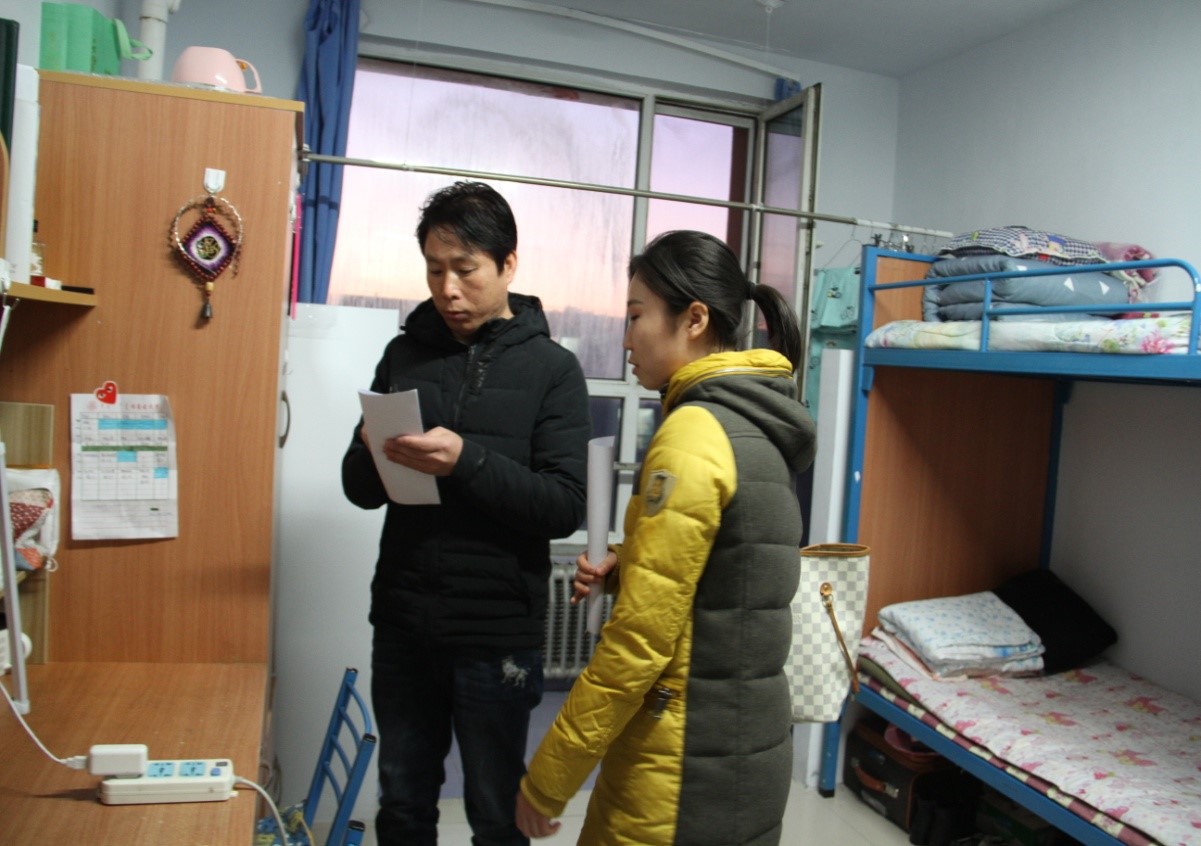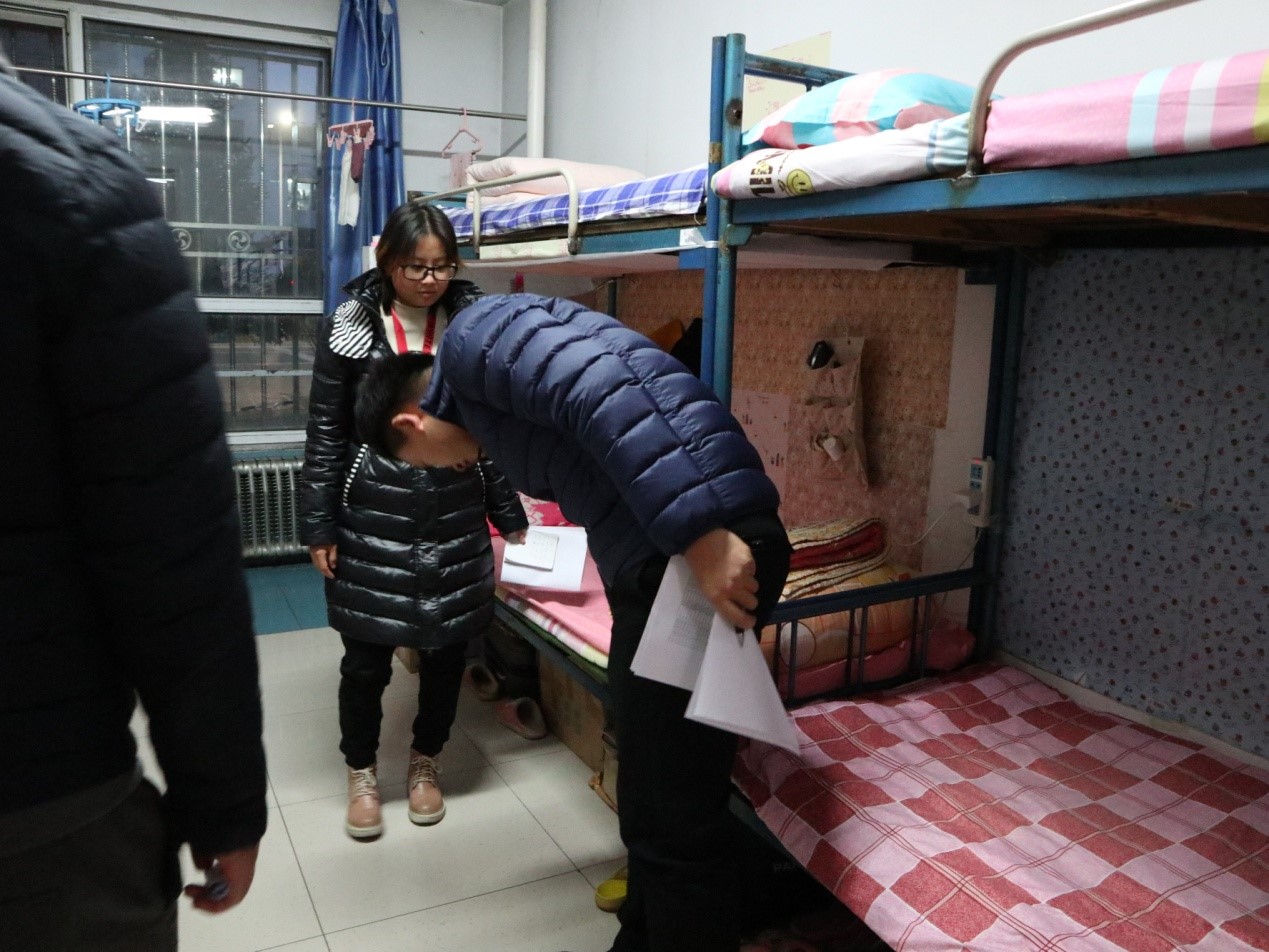为提高工作效率老师们兵分两路,有针对性、目的性地进行宿舍检查。各个宿舍通风良好,空气清新,首先给老师们留下了良好的印象。检查组成员各司其责又秩序井然,认真负责的检查了宿舍卫生管理、用电安全管理、宿舍安全管理等方面,并对发现的问题及时给予指正,争取做到发现问题并解决问题,消除细微的安全隐患。此次宿舍检查的气氛十分融洽,同学们积极配合检查工作,更加强老师与学生的联系交流。