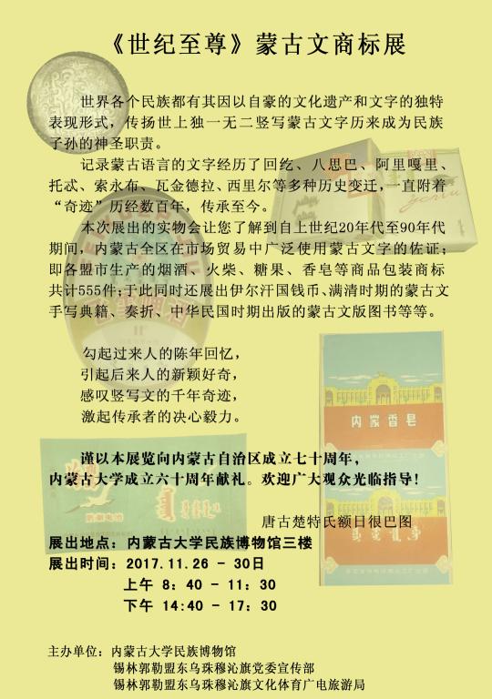《世纪至尊》蒙古文商标展