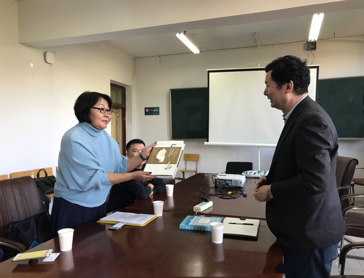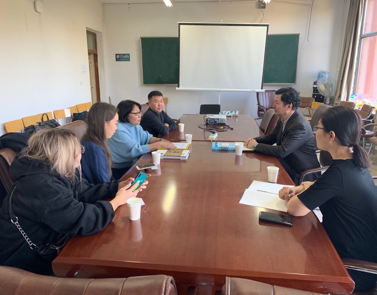 双方就合作培养学生方面进行了初步的沟通和交流。图瓦共和国国立大学Айыжы Елена Валерьевна老师认为双方学校的合作将促进中俄两国人文交流。阿拉坦宝力格教授表示愿意与图瓦共和国国立大学合作培养学生,并认为这次会见以及合作培养项目的成立将会成为双方日后更深层次、更进一步的交流奠定良好的基础。