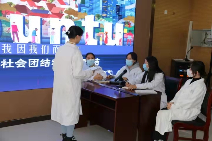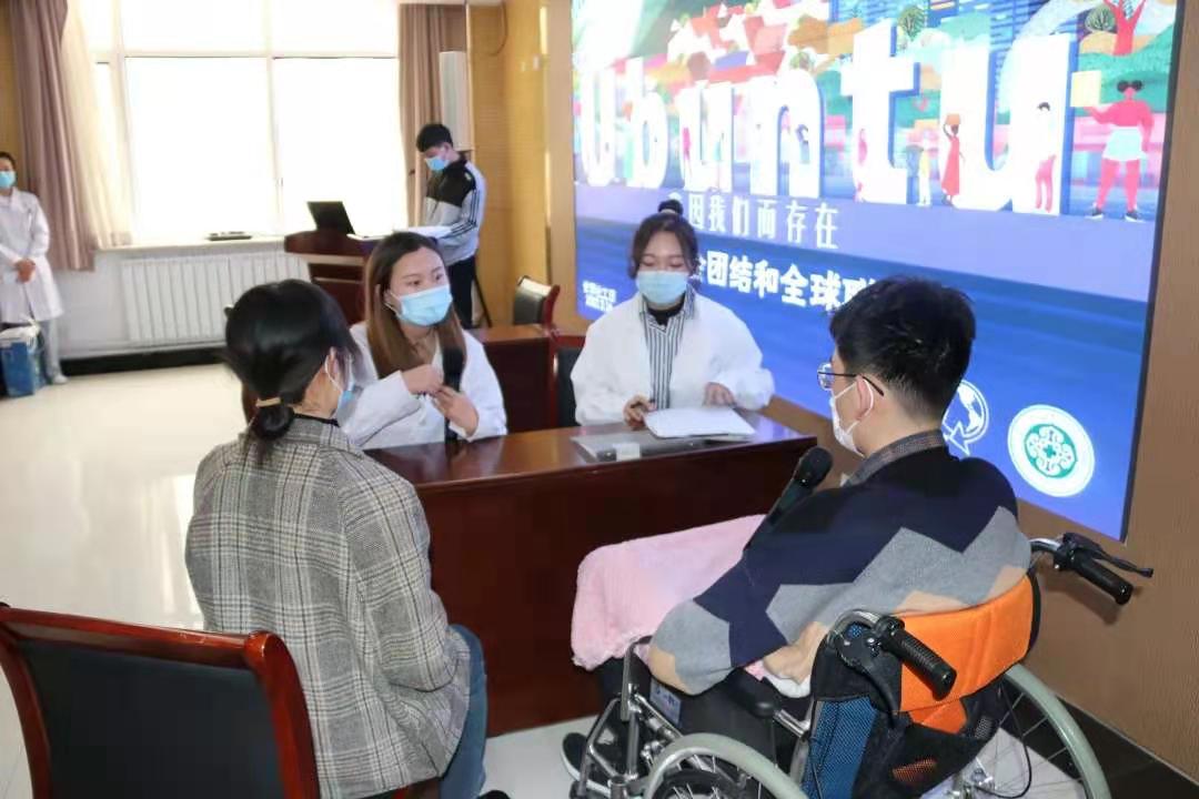 2021年3月16日是第15个国际社工日。今年国际社工日的主题是“Ubuntu(仁爱):我因我们而存在,加强社会团结和全球联结”。为了更好地宣传社会工作、提升社会工作者的专业形象,3月16日下午,amjs澳金沙门线路首页社会工作学系与内蒙古自治区人民医院医务社工部在内蒙古自治区人民医院心脏中心2楼会议室联合举办了“我因我们而存在”——国际社工日主题活动。出席本次活动的有内蒙古大学社会工作学系主任孙丽敏,内蒙古农业大学社会工作系教师汪海玲,内蒙古师范大学社会工作系教师家博,内蒙古自治区人民医院医务社工部主任陆俪平、门诊部主任陈爱萍、小儿血液科医生耿安阳、儿科护士长贾丹丹、心血管外科护士长李玉霞、妇科护士张婷。内蒙古自治区人民医院的部分医护人员、内蒙古大学以及内蒙古师范大学部分本科生和研究生也参加了本次活动。