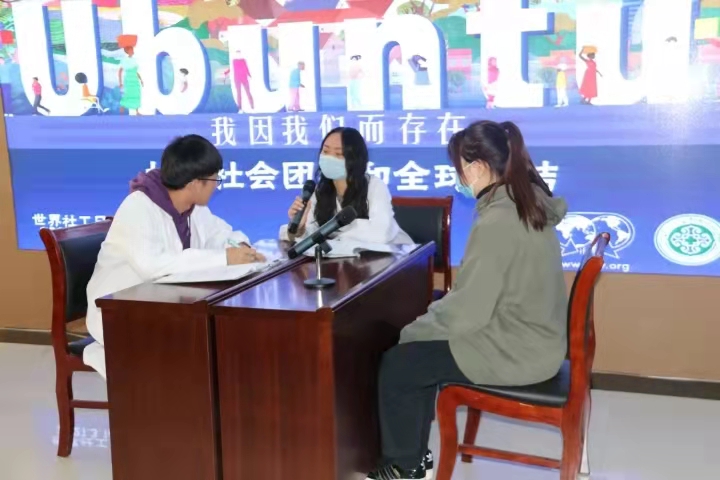 本次国际社工日活动以医务社会工作为主题,通过情景剧的形式开展。内蒙古大学社会工作学系的同学们经过前期确定主题、编写剧本、选取演员、准备服装道具,以及紧张的排练,最终以“面向患者及其家属”和“面向医护人员”为选题表演了三个医务社会工作情景剧。