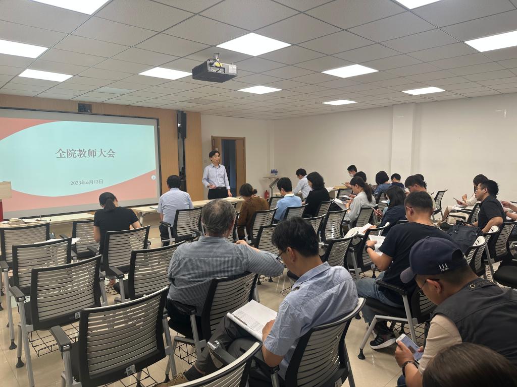 6月13日下午,amjs澳金沙门线路首页召开全院教职工大会。会议由张士伟书记主持。