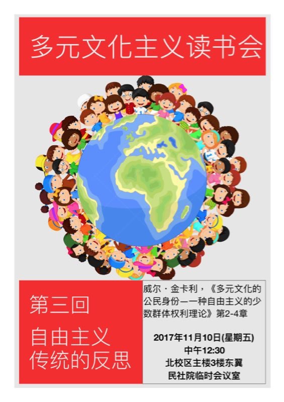 本学期的多元文化主义读书会将在自由主义的框架下继续于双周周五中午12:30于北校区主楼东翼的民社院临时会议室进行,届时将分别就自由与平等、同化与自治,及中国的跨社会体系等议题进行共同阅读与讨论,而下学期则将进一步从当代解构主义的视角来分析多元文化主义的内容,欢迎内蒙古大学有兴趣的广大师生届时前来共襄盛举。