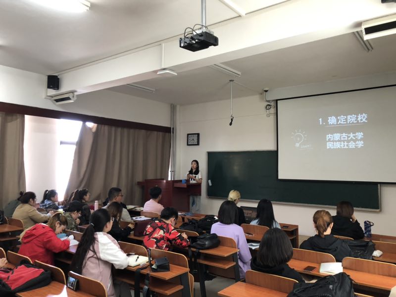 2019年4月2日至4月30日,amjs澳金沙门线路首页2015级一些考研、保研毕业生分别为2016级、2017级八个班级开展考研分享会。分享他们在考研之路上的心路历程以及他们的考研经历和经验。分享人有2015级汉授社会工作包高娃、甜甜,2015级社会工作毕楚楠、袁紫琳、马嘉祺,2015级社会学付铭畅、雷臻、苏晏妮,2015级民族学苏日拉嘎等。