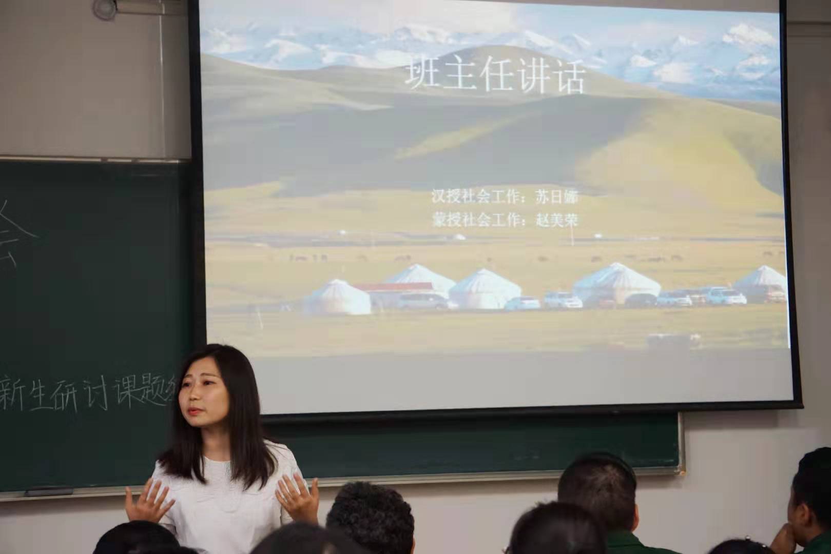 随后,社会工作学系主任孙丽敏老师、社会工作学系任课教师吴英杰老师和朝克赛老师以及两位班主任赵美荣老师、苏日娜老师向同学们进行了自我介绍,给予了新学期寄语,并在专业学习上提供指引。
