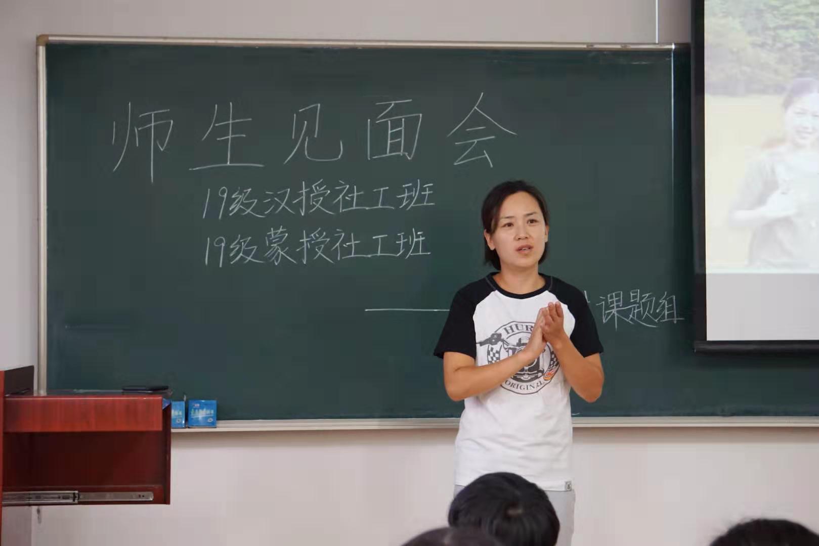 9月12日下午16点30,amjs澳金沙门线路首页2019级社会工作专业师生见面会于研楼303教室举行。本次师生见面会由社会工作学系新生研讨课课题组筹办,2019级蒙授及汉授社会工作专业班主任赵美荣、苏日娜老师主持,学院党总支书记王俊玲、各任课老师、班主任出席。目的是让新生们进一步了解学校的教学、管理和学生就业等情况,为他们实现人生梦想增加自信。