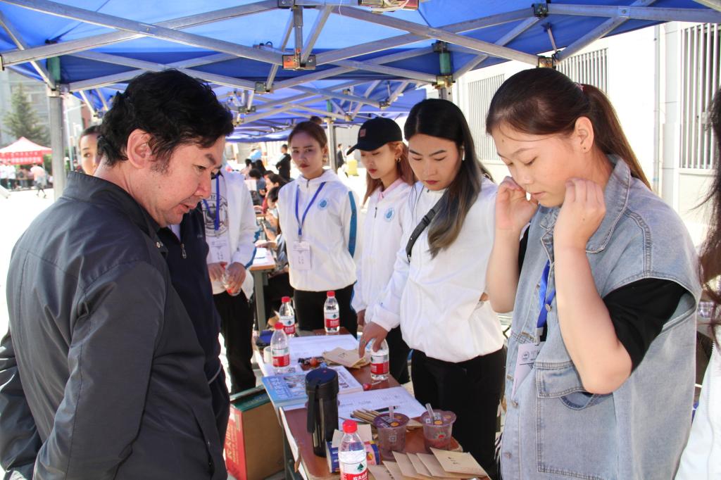 新生报道期间,不仅有学长学姐的体贴关怀,还有老师的耐心帮助。阿拉坦宝力格院长清早亲临东区学院迎新点,同迎新工作人员亲切交流、了解迎新进程。