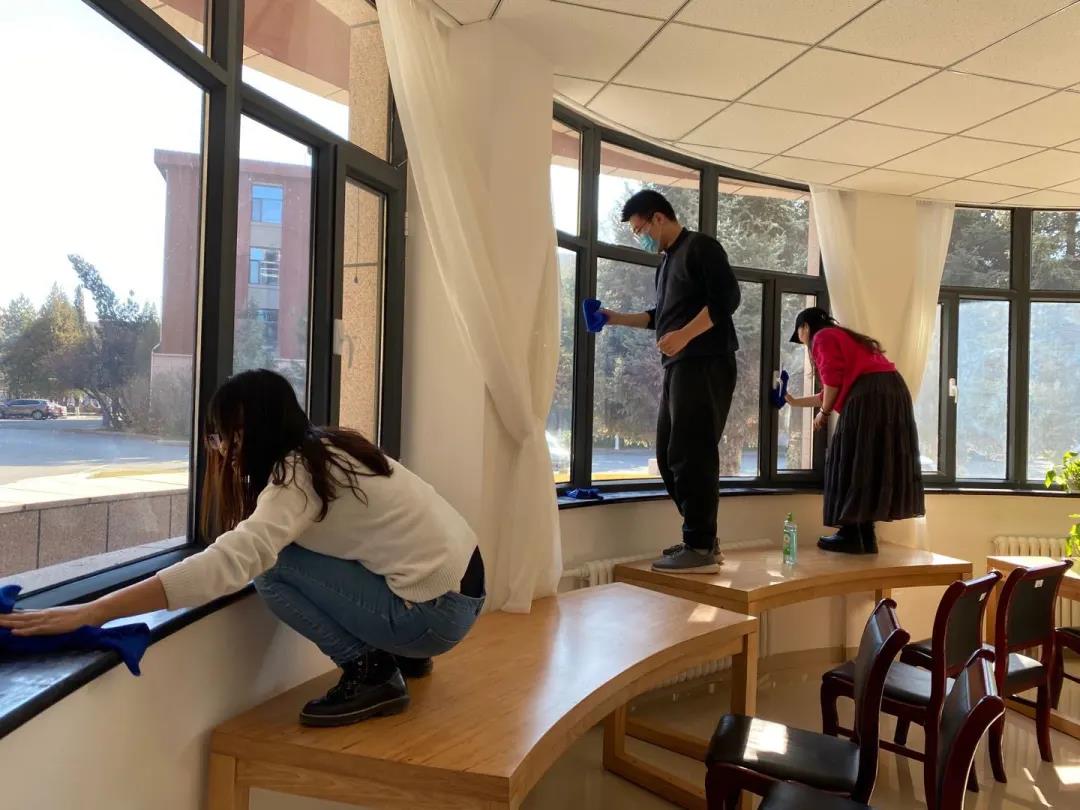 2020年11月9日至13日,为发挥党员先锋模范带头作用,美化学院环境,amjs澳金沙门线路首页本科生党支部于本周组织支部党员进行劳动实践,擦洗学院楼一楼阳面的玻璃。